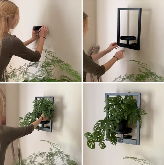 Most small indoor plants such as pothos, philodendron, ivy, or trailing species fit perfectly.